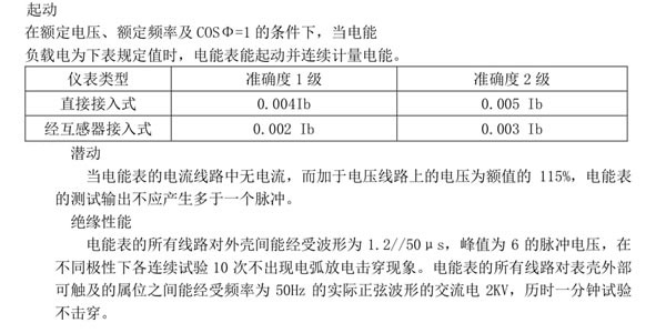 2.1.電能表規(guī)格: